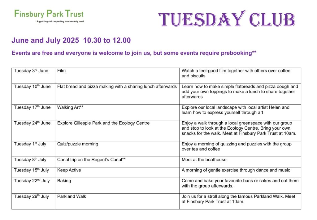 Finsbury Park Trust puts on a range of activities to improve the wellbeing of local people and works in partnership with tenant organisations, local charities and other organisations to reach local communities.
