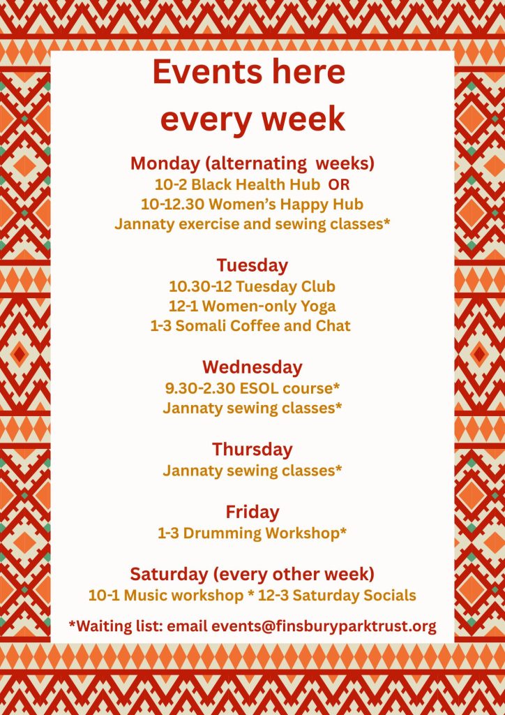 As part of Islington Council’s Borough of Sanctuary programme we are putting on a series of activities designed to build community ties and provide a welcoming centre for the many and varied communities in Islington.